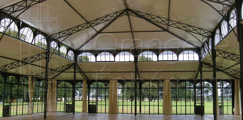 Au contraire des tentes classiques en aluminium et PVC qui nécessitent un habillage jetable pour cacher murs et charpente, nos orangeries n’exigent pas d’habillage intérieur; toutes les parties de nos orangeries sont conçues pour rester visibles. Même les rideaux que nous installons à la demande sont conservés et réutilisés. En cela, nous participons à une démarche écologique.